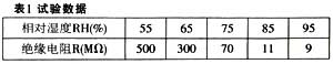 (1) 濕度的影響表 1 中的一組試驗數(shù)據(jù), 表明濕度對絕緣電阻測量的影響。 由表 1 可見,絕緣電阻對濕度變化是很敏感的。 相對濕度增加, 絕緣電阻降低。 當(dāng)環(huán)境的相對濕度大于75 %時, 一般在絕緣材料表面上開始出現(xiàn)微小的水珠或薄薄的水膜。 實際上, 表面絕緣電